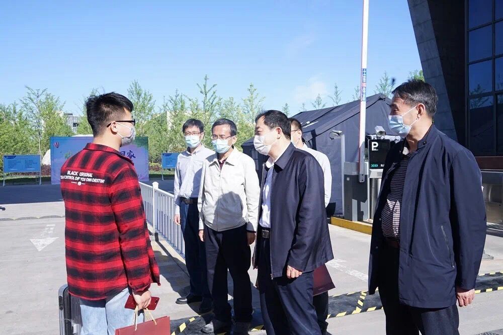 暖心服务,全力保障学生顺利返校。为了充分做好学生返校准备工作,学院全体学工干部认真学习、落实学校返校复学工作要求,并对毕业生返校期间的工作进行详细任务分解。学生返校当天,学院派专人前往火车站接站,全体学工干部各司其职,通力合作,手机24小时开机并及时接听电话,按时按点按要求给返校学生测量体温、登记信息、发放洗手液、出入证、进行教育提醒等各项工作。学院领导班子深入了解学生返程详情、关心学生心理状态、加强人文关怀、向学生传递家的温暖,并鼓励返校学生坚定信心、积极作为、迎难而上。