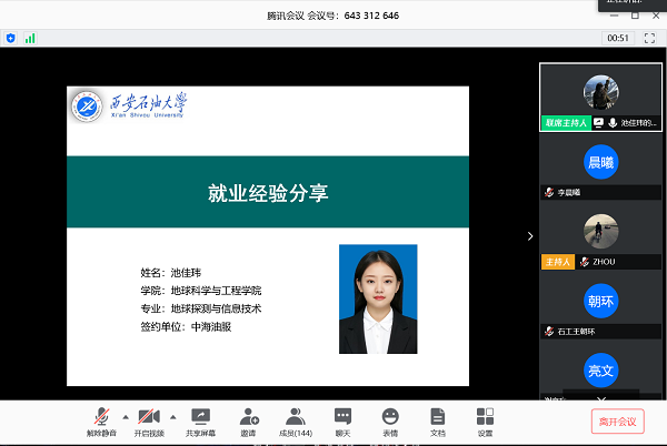 4月29日下午,由校团委和就业指导中心联合主办的石大青年论坛第263期在哔哩哔哩和腾讯会议两个平台同步进行。bat3652020届毕业生池佳玮、屈伟民同学通过网络平台与1400余名学生进行了就业经验分享和交流。