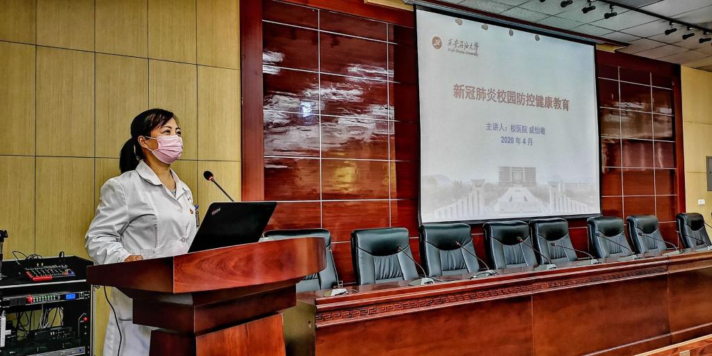 2020年4月19日,陕西省教育厅发布了“陕西省教育厅关于做好陕西高校2020年春季学期开学工作的通知(陕教明电〔2020〕3号)”。就全省高校2020年春季学期开学工作明确4月27日起,各高校可以开始安排学生错时错峰返校,具体返校时间由各高校统筹安排。为做好学生返校工作准备,校医院立即严格执行教育厅及学校要求,认真做好组织统筹,不断拓展健康教育方式,扎实开展开学前后新冠肺炎疫情防控宣传教育各项工作。2020年4月24日,校医院成怡敏副主任医师在雁塔校区第五会议室为全体后勤人员进行了题为《新冠肺炎校园防控健康教育》健康讲座活动。