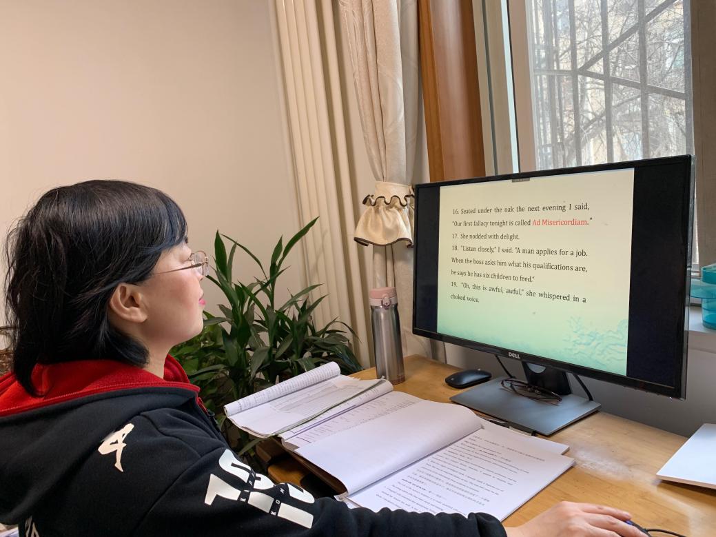 武绒老师说:“怀着惴惴不安的心情终于结束了新学期的第一次网络授课!庆幸的是一切顺利!腾讯会议提供了一个近乎实体课堂的语音互动平台,出乎意料地感觉学生比在实体课堂更积极地参与课堂活动!A new teaching and learning experience!”