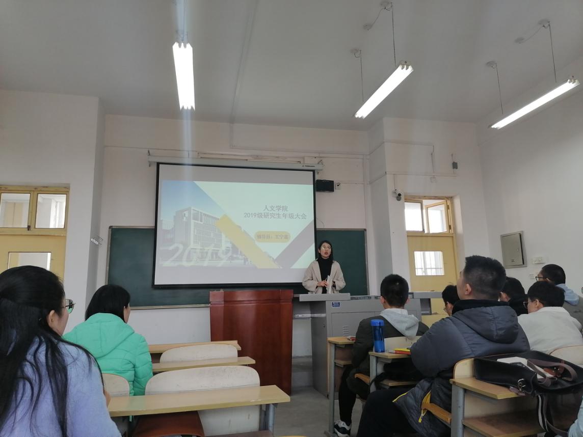 2019年12月11日中午12:00,人文学院在鄠邑校区A151召开研究生年级大会。会议由辅导员王宁鑫主持,人文学院2019级全体研究生参加了此次年级大会。
