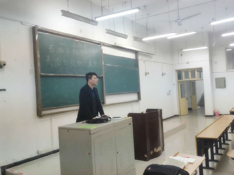本次活动共分为前期动员、英语自习、四级模拟考试和英语讲座四个部分:1、10月27日晚8点,2017级辅导员孙浩哲老师于鄠邑校区B123教室,对我院2017级未通过四级同学召开四级动员大会,从就业和考研两个方面强调了英语四级的重要性,着重分析了目前国内外石油石化企业招聘形势,以及相关石油高校研究生招生情况。其次,对本次英语四级促进月活动的英语自习、四级模拟考试和英语讲座进行了安排部署;