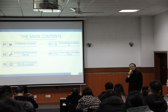 启动仪式后,罗剑朝教授学术报告会顺利举行。经济管理学院院长王君萍教授、副院长李俊亭副教授以及部分教师与研究生共100余人参加报告会。罗剑朝教授以《金融改革创新与乡村振兴》为题,就金融的定义与主要特征、金融发展现状与存在问题、乡村振兴背景下金融改革的主要内容、金融创新发展、金融改革创新的难点与未来趋势等内容进行了分析与介绍,并就课题申报中的选题标准、申请书的逻辑自洽性等问题与与会老师进行了深入探讨。罗教授的报告深入浅出、内容丰富、信息量大。与会老师聆听完报告后纷纷表示,深受启发,收获颇丰。
