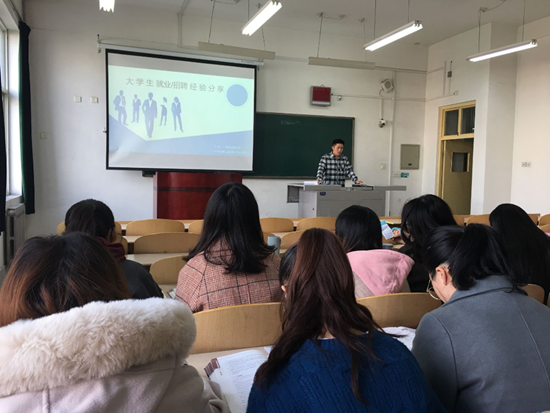 11月15日下午,经济系学生党支部组织毕业生党员召开招聘经验交流会。已签约工作的同志分享了求职经验,并希望其他同志要端正态度,在面试前做好充分准备,尤其是国贸专业的学生,在面试前尽可能的准备一篇英文自我介绍,了解招聘公司信息,不要打无准备之仗。