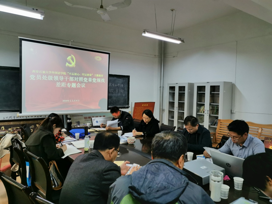 11月4日下午,外国语学院党委理论学习中心组在雁塔校区1号教学主楼701会议室召开“共产党人的初心和使命”专题学习研讨会暨“不忘初心、牢记使命”主题教育党员处级干部对照党章党规找差距专题会议。学院党政领导班子、理论中心组成员、教工党支部书记参加了会议,会议由学院党委书记蔡强主持。