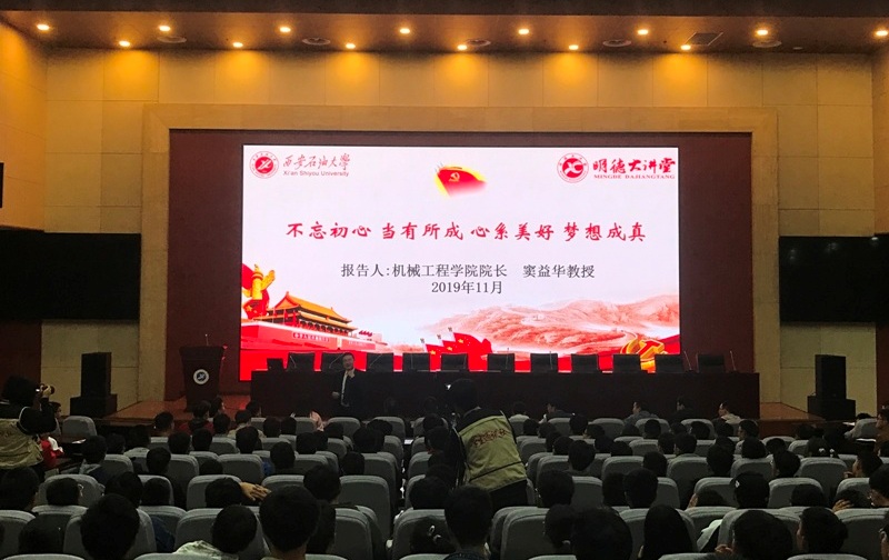 11月4日晚,由校团委主办,机械工程学院团委、学生会承办的第六十三期明德大讲堂在鄠邑校区图书馆弘石学术报告厅成功举办。机械工程学院院长窦益华教授应邀作了题为《不忘初心 当有所成 心系美好 梦想成真》的讲座,鄠邑校区400余名师生听取了讲座。讲座由机械工程学院党委副书记刘笛主持。