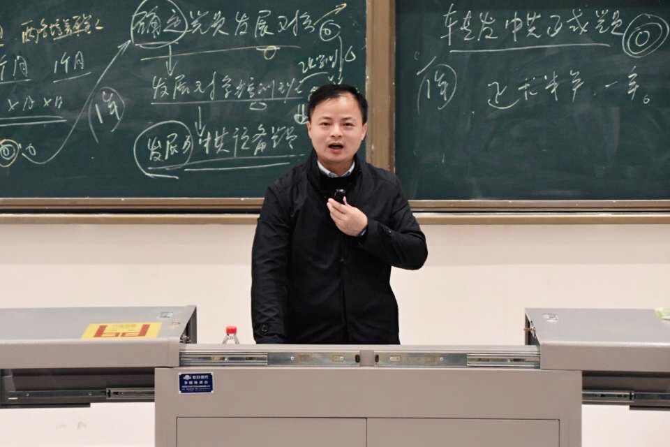 学院党委书记蔡强作了《中国共产党的组织体系和组织原则》辅导培训。他首先祝贺同学们通过组织的筛选,从政治上、学习上、生活上提出了具体要求,他要求各位同学在大学期间要牢固树立理想信念,努力提高学习成绩,主动担当责任和使命,积极服务同学学习生活。