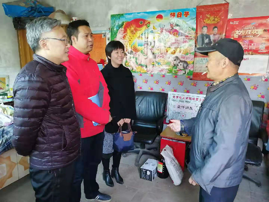 10月29日上午,化学化工学院党委书记司马文龙,副书记高黎、化学工程系主任曹彬和综合办公室主任张少良一行4人赴永寿县永平镇坚固村开展精准扶贫工作。