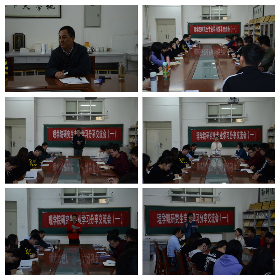 不忘初心、牢记使命。理学院领导班子坚持“教育报国守初心、立德树人担使命”,强化学风建设、增强对研究生的教育、服务、管理工作,本学期计划组织召开三场研究生专业学习分享交流会。此次活动给予同学们一个相互了解、思维碰撞、学术交流的平台与机会,体现出研究生同学认真的科研态度,营造出了良好的学术氛围。