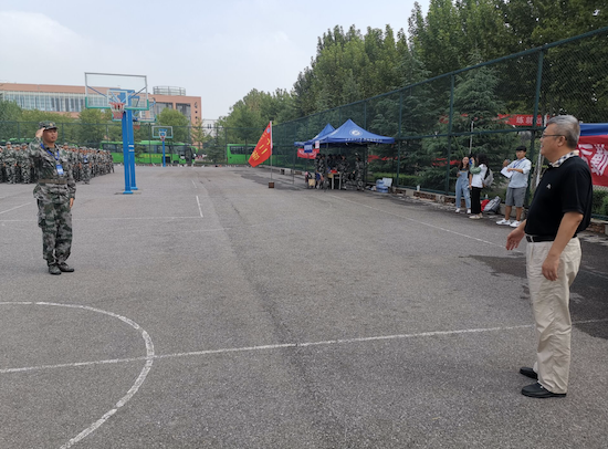 9月5日上午,经济管理学院党委书记闫大维同志到学院2019级新生军训现场视察同学们的军训情况并慰问参训师生。