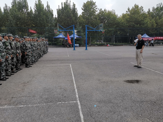 经济管理学院2019级本科生共有588人,根据相关安排,编为军训第四营11连和12连,在鄠邑校区西篮球场开展训练。