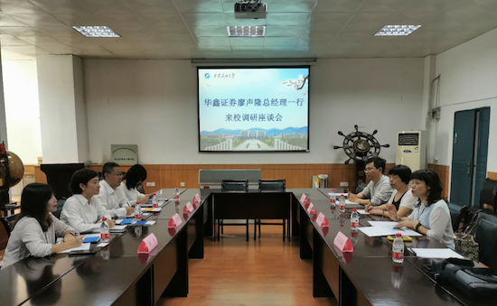 王君萍院长对廖声隆总经理来经济管理学院调研表示感谢,对近年来学院的学科发展、人才培养、科学研究、社会服务等方面的工作和成绩做了简要的介绍,并强调了学院在进一步发展过程中与华鑫证券等公司开展院企合作的重要性。石冬莲教授就经济管理学院金融学专业的相关情况进行了介绍,重点介绍了金融学专业的师资队伍、生源结构、教学条件、培养大纲、实习实践基地等情况。