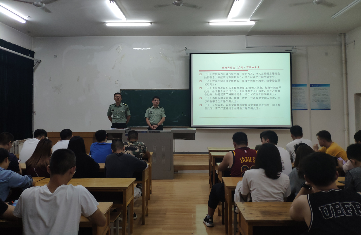 2019年9月2日晚19:00,电子工程学院在C3楼419召开了2017级安全信息员培训会暨稳定安全会议,会议由电子工程学院学生管理办公室主任兼2017级辅导员周毅华主持,2017级辅导员高建邦、2017级全体学生干部及宿舍长参加了本次会议。