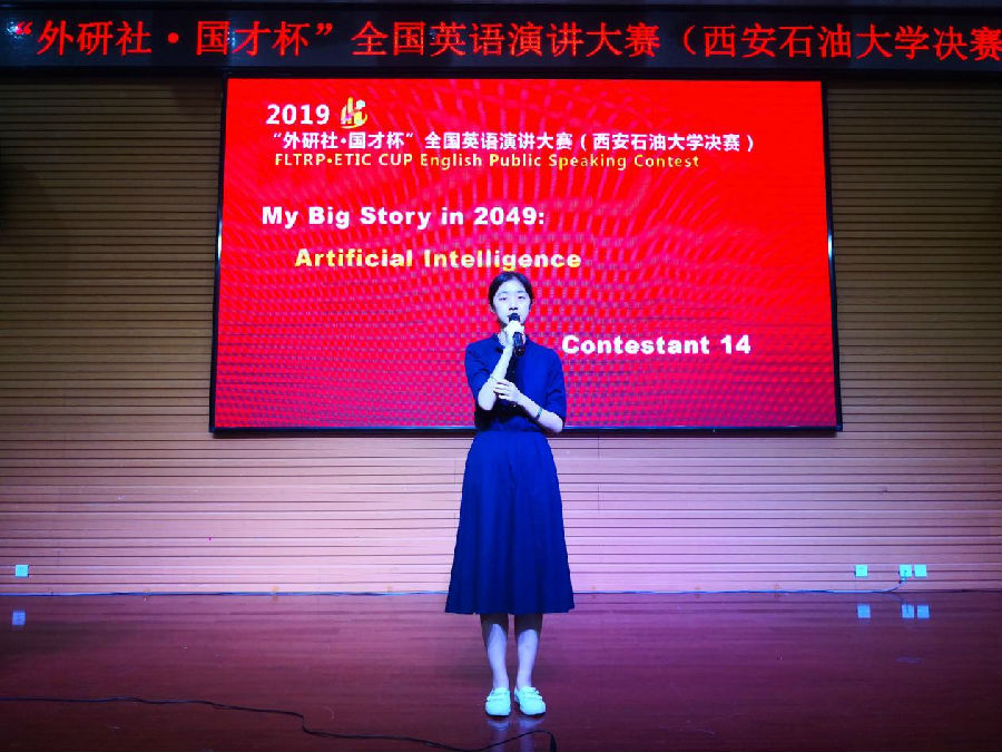 比赛伊始,王业青副书记代表学院党委致辞。随后参赛选手们围绕“My Big Story in 2049”展开为时三分钟的精彩演讲,并回答评委老师针对演讲内容提出的问题。比赛过程中,选手们激情澎湃、神采飞扬,他们凭借扎实的知识功底、广阔的视野、从容不迫的应变能力以及标准流畅的口语表达赢得观众和评委老师们的阵阵掌声。