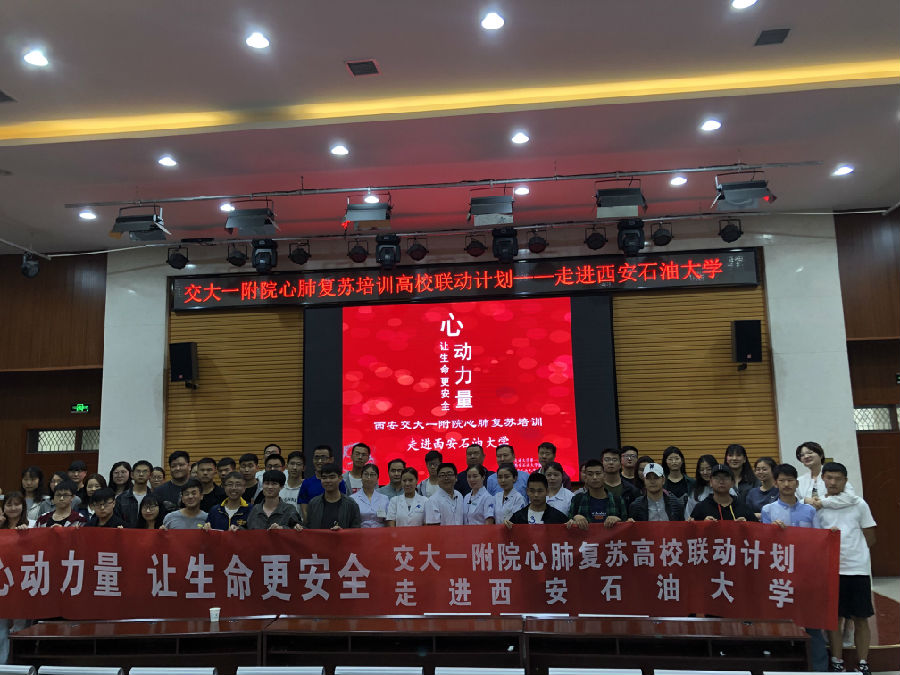 2019年5月29日下午,西安交通大学第一附属医院心肺复苏培训高校联动计划第九站走进bat365中文官方网站鄠邑校区。此次培训的人员为校医院医护人员、教职工代表、及学生代表共200余人参加。