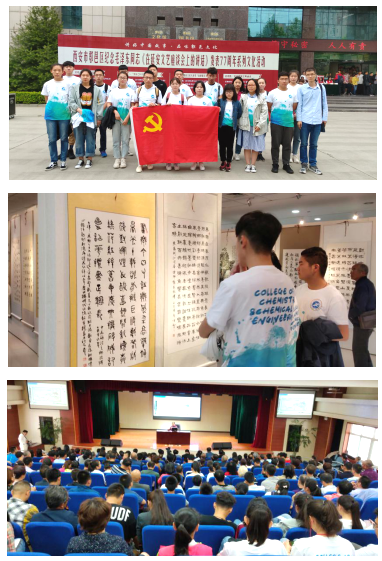 今年是建国70周年,5月23日,又是毛泽东同志《在延安文艺座谈会上的讲话》77周年纪念日,为了继承祖国优秀传统文化,弘扬社会主义文化主旋律、践行社会主义核心价值观,学院党委组织学生党团员骨干共计20余人,于5月18日上午8点30分一同前往西安市鄠邑区文化中心开展了以“学习传统文化,践行社会主义核心价值观”的主题党日活动,一起品茗了主题为“讲中国故事,品鄠邑文化”的讲座。大家一同参加了活动“与赵丰一起读书”、参观了“诗词之乡10周年”书法作品展、聆听著名作家高建群先生主讲的“从统万城到一带一路”讲座。通过开展此次主题党日活动,党团员们阅读历史,感受文化,体会中华民族传统文化的博大精深,和伟大的人文情怀,在潜移默化中提高文化和道德素质,激发爱国热情,同时向建国七十周年献礼,秉承红色文化基因,立志为中国特色社会主义建设做贡献。
