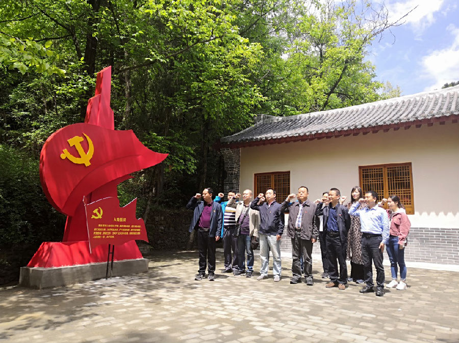 参观学习第一站是位于北宽坪镇五峰山下唐渠边的商洛县委县政府旧址纪念馆。在这里,同志们怀着崇敬的心情学习了北宽坪镇深厚的红色历史,了解了历史上与小镇有关的著名红色人物的先进事迹,尤其是李先念等老一辈革命先烈在小镇的战斗、工作、生活事迹,以及中原突围、豫鄂陕边区党委扩大会、商洛民主政府成立等重大革命历史事件。真实的影像记录还原了那个年代艰苦卓绝的革命历程,同志们都深受教育和鼓舞。学习第二站是商洛县委县政府旧址。在这里,全体党员同志重温入党誓词,面对党旗许下庄严承诺。