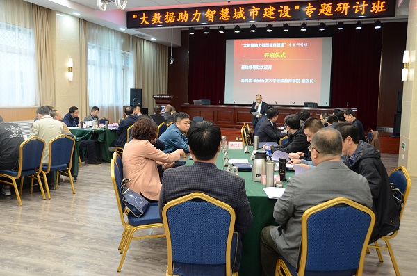 3月18日至28日,bat365培训中心成功举办了 2019年春季陕西省干部教育培训“大数据助力智慧城市建设”专题研讨班。开班仪式上,继续教育学院吴民生副院长对参加本次培训的来自省直机关单位、省属企业、高校及地市政府相关部门的39位处级领导干部学员表示热烈欢迎,并简要介绍了bat365中文官方网站基地的发展历程和我基地培训工作开展情况及取得的成绩。