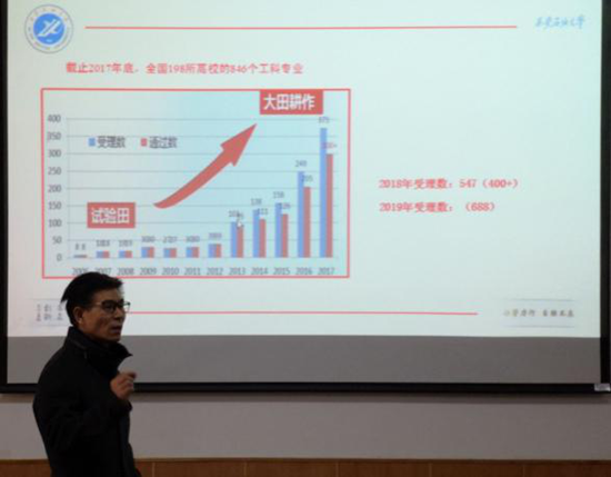 专业认证(评估),在国家层面上,是未来评价专业质量的重要标准,是高等教育内涵发展的重要内容;省级层面上,推动专业认证(评估)是深化高校供给侧结构性改革的重要抓手,是“四个一流”建设的重要内容;学校层面上,开展专业认证(评估)对于提高学校核心竞争力,培养一流人才,建设一流本科,争创一流专业具有重要的现实意义。为了进一步了解和掌握专业认证(评估)的相关理念、方法,经济管理学院特意邀请校高教评估中心副主任时保宏老师,进行了精彩讲座。推进会由教学副院长吴勋主持,各专业负责人、系主任、教学办工作人员参加。