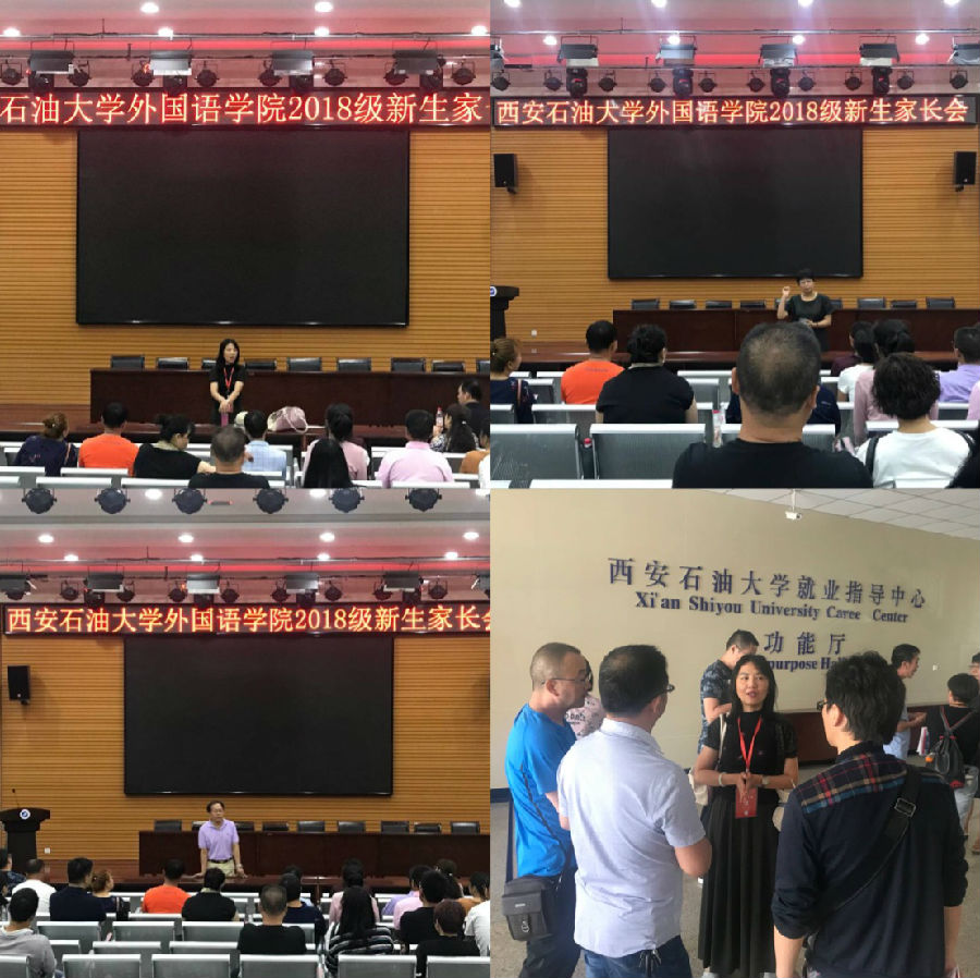 9月7日上午,外国语学院在鄠邑校区118大厅召开2018级新生家长会。院党委书记廖敏 、院长于艳英、院教授委员会主任袁森亲自来到家长会上,一一向广大18级新生家长介绍了学院历史、学科发展、国际交流、学生管理等家长们关心的话题。
