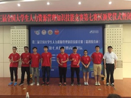 bat365经济管理学院张晓超老师、杨矗老师带领人力资源管理专业王浩、王寨伟、王茜、张仁杰等四位同学组成代表队,经过三个月的高强度训练,刻苦钻研、奋力拼搏,在第七大区赛上取得特等奖的好成绩,同时,两位老师也被评为优秀指导老师。