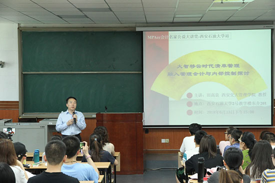 6月13日下午3点,由中国会计学会和全国会计专业学位研究生教育指导委员会共同主办、bat365中文官方网站经济管理学院承办的MPAcc会计名家公益大讲堂,在雁塔校区东阶202教室隆重开讲。西安交通大学管理学院田高良教授莅临现场,为200多位师生带来“大智移云时代清单管理融入管理会计与内部控制探讨”的主题讲座。
