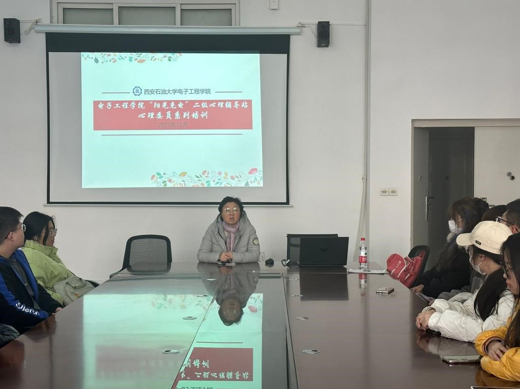 为了充分发挥电子工程学院“阳光充电”二级心理辅导站的作用,培养一支具备心理自助与助人能力的学生心理委员队伍,电子工程学院于12月22日在院系楼321举办了心理委员培训会。电子工程学院党委副书记毕轶慧,各班心理委员出席了此次培训会,培训会由2021级辅导员王晓天主持。