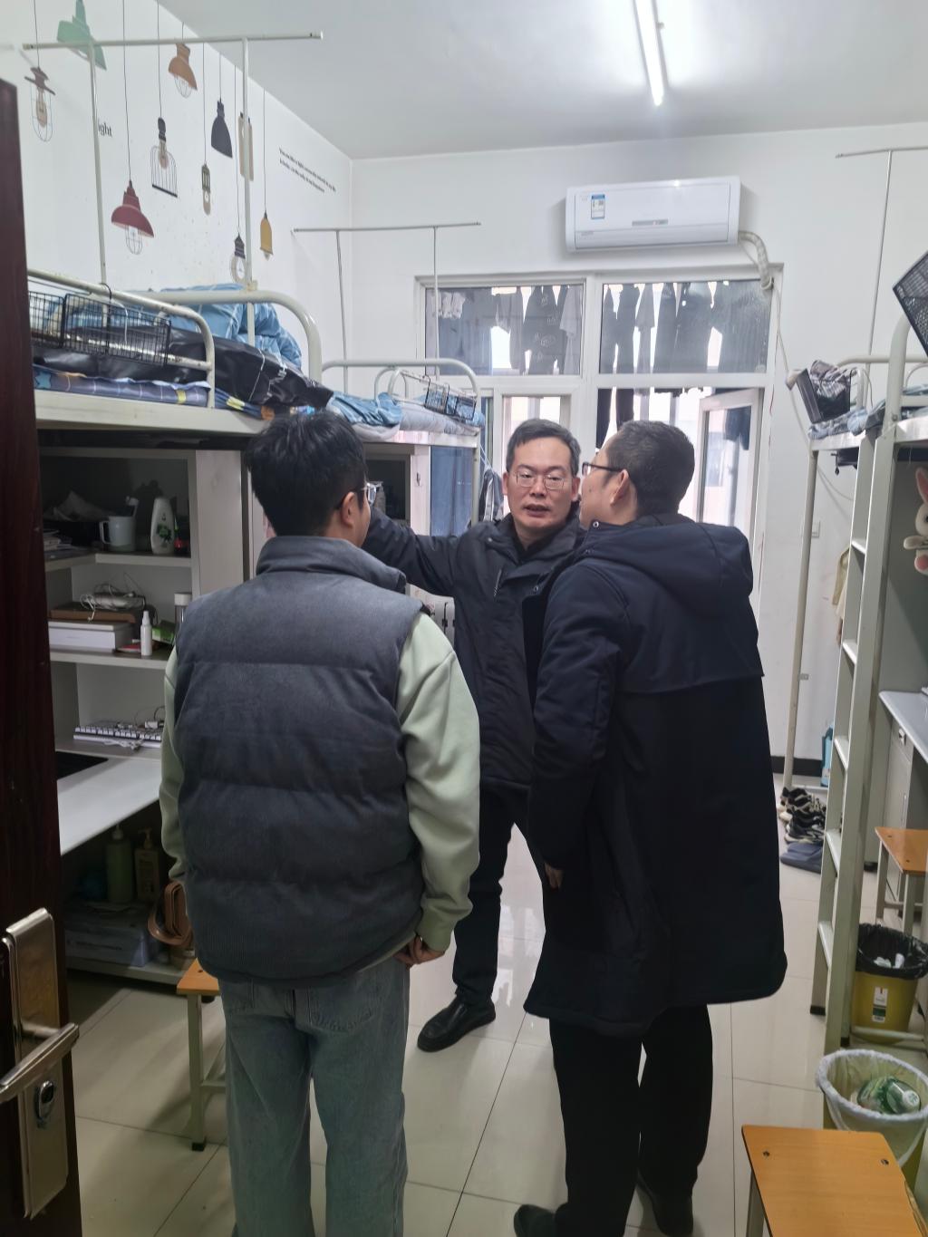 近日气温骤降,为防范化解学生宿舍安全隐患,保障学生人身和财产安全,确保学生宿舍的安全和稳定。12月27日至28日,石油工程学院党委副书记张建高带领全体学生工作干部深入各年级宿舍,开展宿舍安全检查工作。