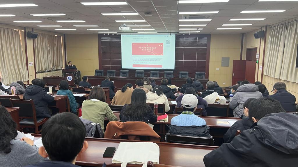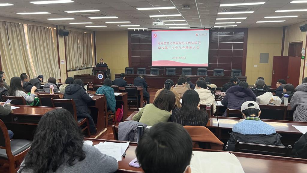1月8日上午,马克思主义学院党总支在雁塔校区会议中心第五会议室召开传达学习学校第三次党代会精神大会。学院领导班子、全体教职工共50余人参加会议,会议由党总支书记张伟主持。