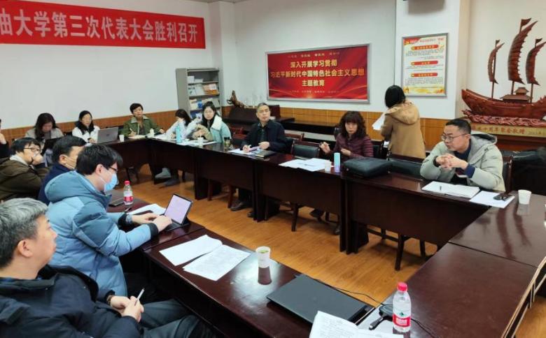 为持续深入学习贯彻习近平新时代中国特色社会主义思想和党的二十大精神,进一步落实中国共产党bat365中文官方网站第三次代表大会要求,深化本科教育教学改革,推动学校本科教育高质量发展,全力做好本科教育教学审核评估评建工作,根据学校《关于在全校开展本科教育教学思想大讨论活动的通知》要求,经济管理学院于1月12日上午召开本科教育教学思想大讨论会议。会议邀请西安科技大学管理学院副院长史玉芳教授线上分享了审核评估迎评促建工作经验以及学术型人才培养举措。学院党委书记王宏卫,院长王君萍,以及各系主任、专业负责人、办公室主任参加会议。会议由副院长吴勋主持。