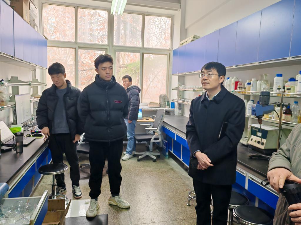 检查过程中,高小明一行对学院每个科研实验室进行了详细检查,并现场查看了安全台账记录、危化品试剂的使用登记、压力气瓶的保管、易制毒试剂的保存,并和研究生同学进行了交流和沟通。李善建详细了解了目前各科研实验室运行情况、实验台分布和各位导师科研工作进展情况。