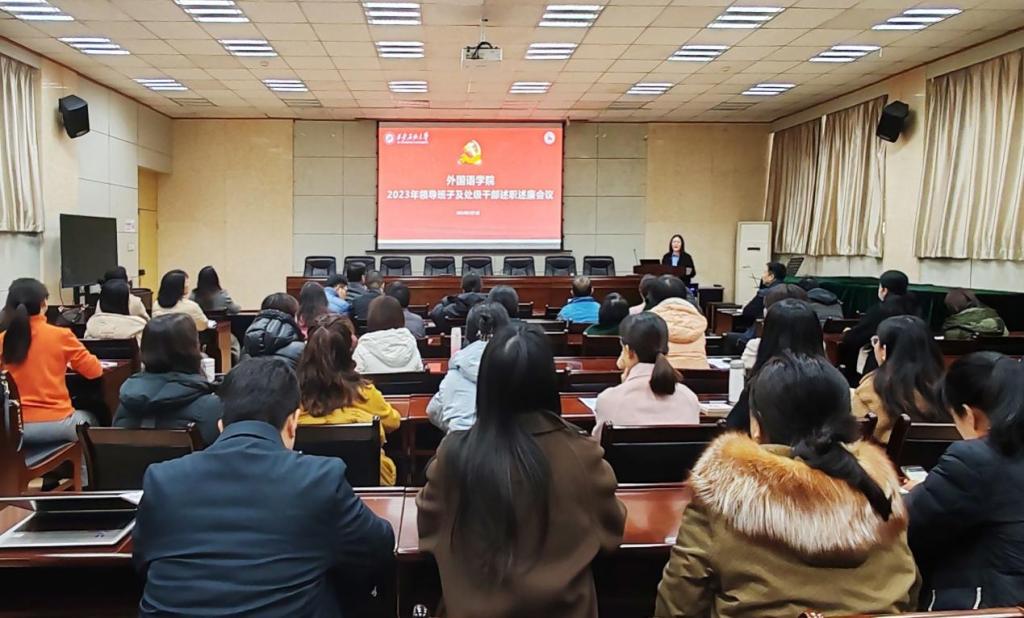 3月1日下午,外国语学院在雁塔校区会议中心第三会议室召开领导班子述职述廉暨全院教职工大会。学院党政领导及全体教职工参加会议。会议由学院党委书记田虹霞主持。