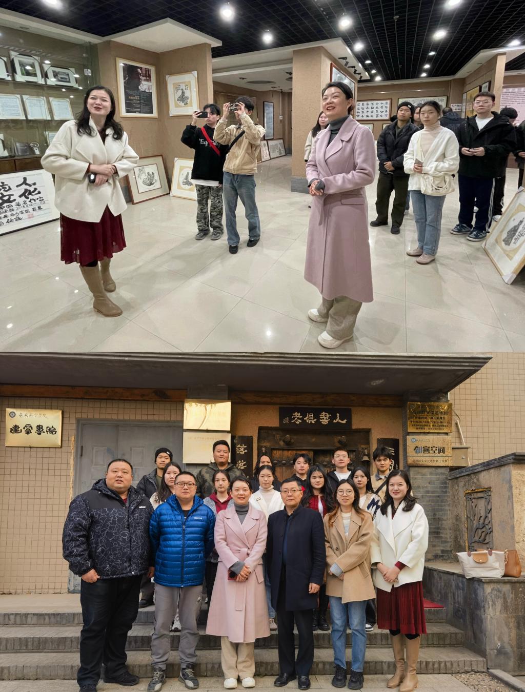 19日上午,在讲解员的详细介绍下,盛丹一行参观了高建群文学艺术馆,进一步了解作家高建群及其创作历程,他用写作的笔和作画的笔,来表达自己内心的崇高向往,唤醒人们灵魂深处沉睡的东西。高建群的画作不求形似却意味盎然,用笔简约而余韵悠长。在文学艺术馆近距离欣赏作家手稿及书画作品,学生们纷纷表示收获颇丰。随后,在调研座谈过程中,盛丹与其党总支书记杨光就各自学生工作基本情况进行交流,在就业推进、学科发展、特色活动等方面展开讨论,双方均表示希望今后进一步加强交流,共同探索提升学生工作质量。离行前,全体参会人员合影留念,盛丹热情邀请西安航空学院学工同仁来院交流指导。