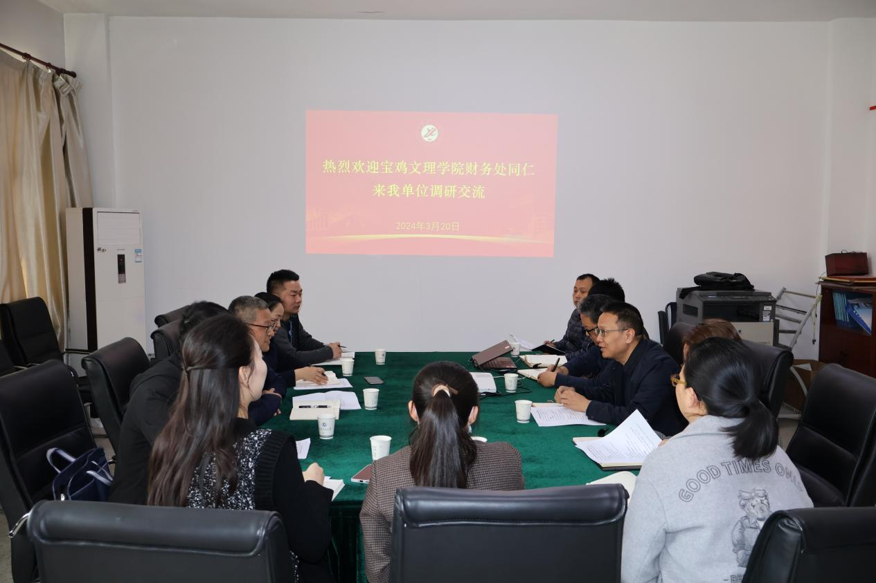 3月20日下午,宝鸡文理学院财务处处长赵国政一行来bat365调研交流财务管理工作,座谈会由bat365财务处处长范宏主持,财务处相关科室人员参加调研座谈。
