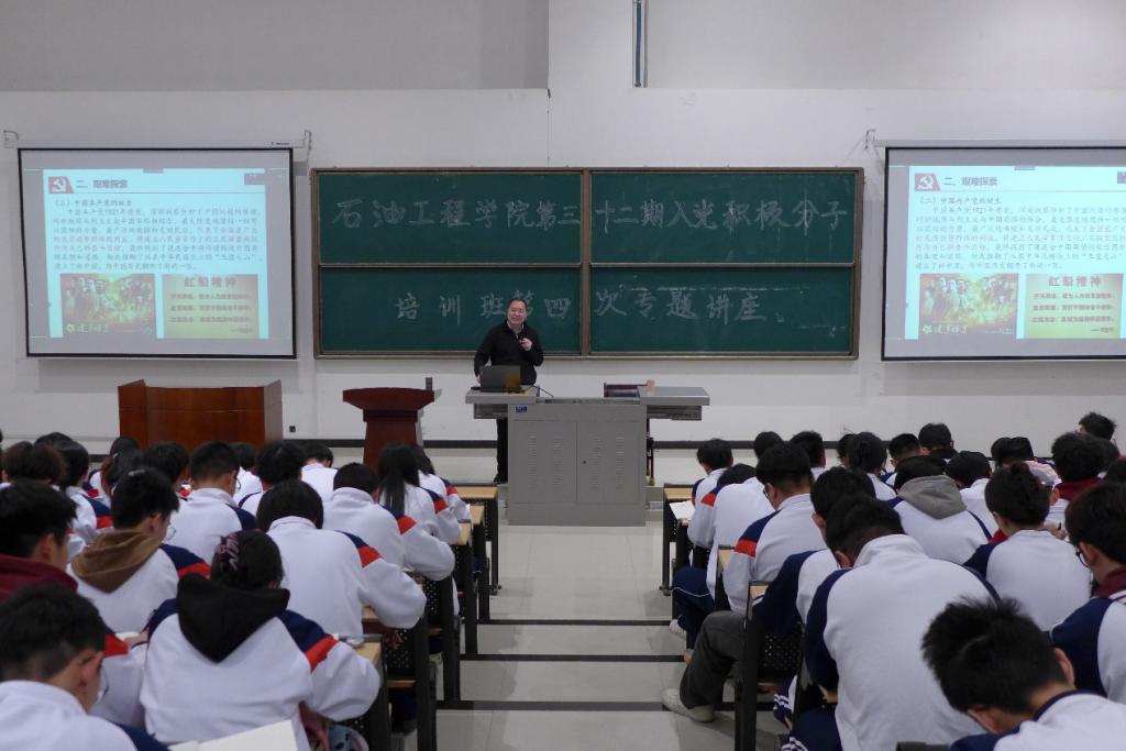 3月23日晚7点,石油工程学院第三十二期入党积极分子培训班第四次专题讲座于开物楼115教室顺利开展,本次讲座线上线下同步进行。bat365中文官方网站纪委副书记、纪委巡察办党支部书记齐仲锋受邀担任主讲人。
