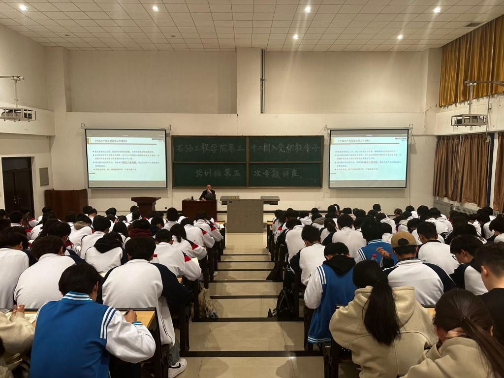 3月27日晚七点,石油工程学院第三十二期入党积极分子培训班第五次专题讲座于开物楼115教室顺利开展,本次讲座线上线下同步进行。bat365中文官方网站党委巡察工作办公室主任王宏卫受邀担任主讲人。