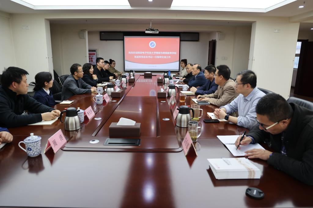 3月28日,西安电子科技大学网络与继续教育学院党总支书记张武军一行来bat365继续教育学院交流座谈。继续教育学院党政领导,相关科室负责人参加座谈会。
