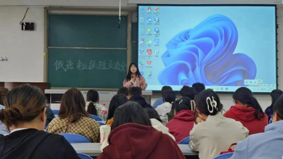 为落实学院关于推进毕业生就业工作的安排,加强俄语专业学生对升学和就业形式的了解,帮助学生做好学业及职业规划。4月2日,俄语专业在鄠邑校区A302教室举办就业考研经验分享交流会,俄语专业优秀在校生杨奕聪、孙芳茹、张静叶、薛思琪以及优秀毕业生郭丽玮应邀分享经验。会议由俄语系系主任张艳主持。俄语专业教师李娜、贾永宁、孙婷、郭静远及近200名本科生参加会议。