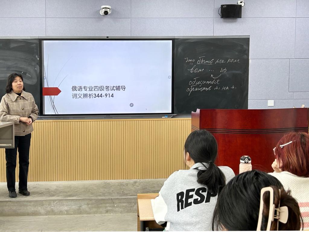 学习引领,干在实处。3月以来,俄语系教师党支部急学生所需,贡献师者力量。针对本学期的俄语专八、专四考试,组织党员教师罗蝴蝶、孙婷、李娜、郭静远、管义珅为学生开展俄语专业四级讲座7场,主题分别为:俄语前置词、名词、运动动词以及带前缀的运动动词、词类辨析、形容词等。组织专业八级、专业四级模拟考试二场,有效助力俄语专四专八通过率。为提高教育教学和学生学业质量,俄语系坚持为学生们配备7人一组的学业导师,俄语系全体教工党员、贾永宁老师、无党派人士王春牧老师作为学业导师坚持每周为学生辅导一次,为学生取得良好成绩保驾护航。此外,为帮助学生做好职业规划,推进就业和考研,俄语系教师党支部还举办了“榜样的力量”经验分享交流会,组织优秀在校生、毕业生给低年级学生分享经验,发扬专业传帮带的优良传统。