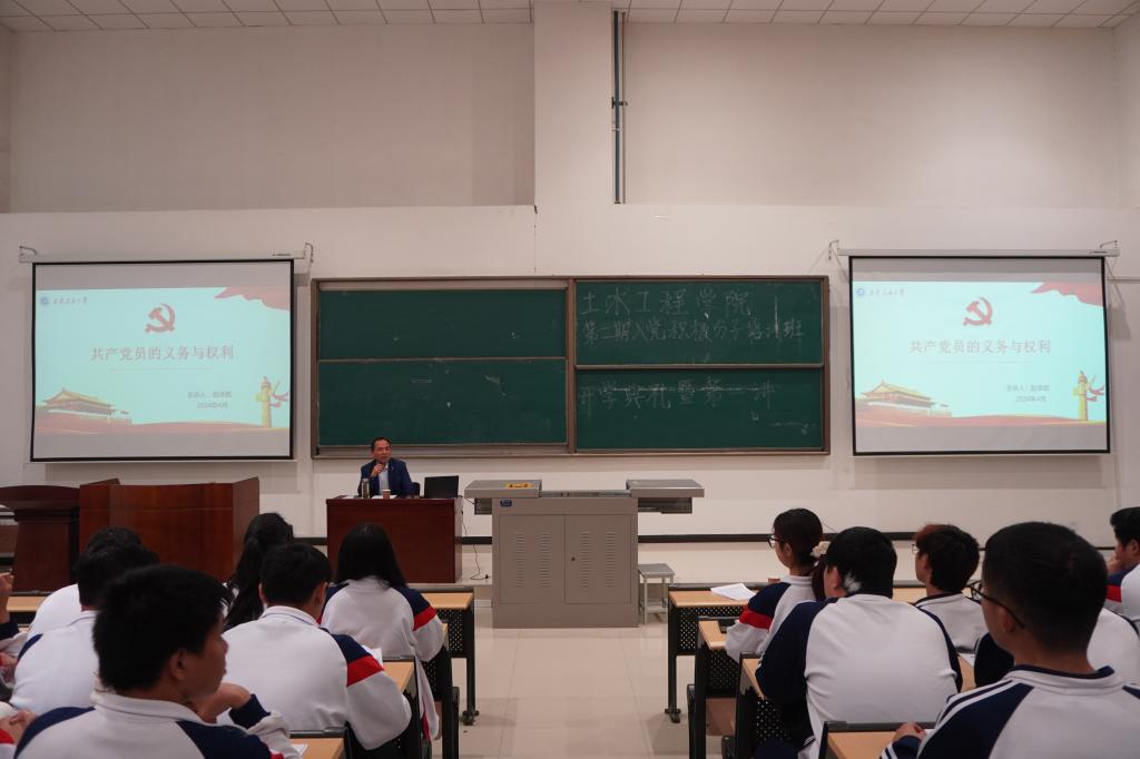 4月10日晚,土木工程学院党委在鄠邑校区天工楼115教室举行第二期入党积极分子培训班开班典礼式。校党委委员、宣传部部长赵承胜、土木工程学院党委书记陈涛、各年级辅导员应邀出席了开班典礼,本期125位学员参加了开班典礼。开学典礼由学院党委委员、学工办主任李化杰主持。