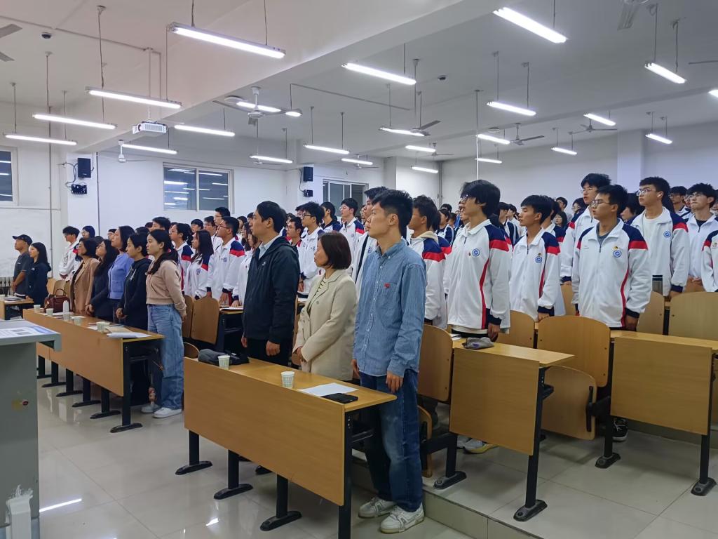 本次开班仪式由电子工程学院学生工作办公室主任钱宇航老师主持,在激昂的《国际歌》中拉开帷幕。