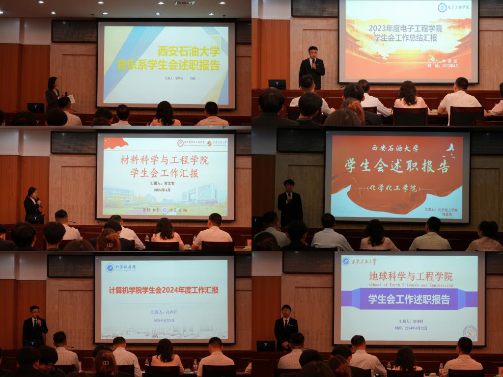 会上,各院系学生会执行主席根据抽签顺序依次上台,围绕着组织建设、思想引领、品牌活动、权益服务、社会实践、校院联动、从严治会等方面进行汇报,总结了2023年度开展的各项特色活动及取得的优异成绩,剖析了工作中的不足之处及改进措施,并规划了后续本学院的学生会工作。随后,会议根据各院系学生会执行主席的述职内容,参照评分标准,进行了客观、公正的评分。