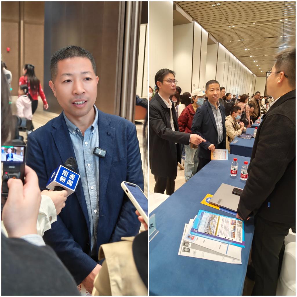 在第二届南通人才日暨新质生产力专场招聘会上,bat365中文官方网站访企拓岗促就业专项行动小组成员与众多企业代表进行了深入的交流和洽谈。招聘会现场气氛热烈,求职者络绎不绝。期间,苟毅飞代表学校接受了南通新闻的专访,他详细介绍了学校的专业设置、人才培养、毕业生规模及现阶段就业情况,并诚挚邀请各企业单位莅临学校选聘毕业生。会上,专项行动小组成员还就企业的人才需求、校企合作模式等方面与企业代表进行了深入探讨,达成了多项合作意向并现场向企业精准推荐毕业生。