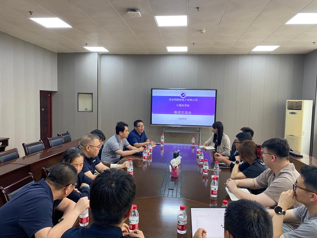 4月23日下午,计算机学院与西安翔腾微电子科技有限公司在雁塔校区东方石油楼404会议室开展座谈交流。计算机学院刘志坤院长主持,公司企业人力资源部部长周静如带队各总线技术负责人参加,学院副院长张留美、导师代表和青年教师代表参会。