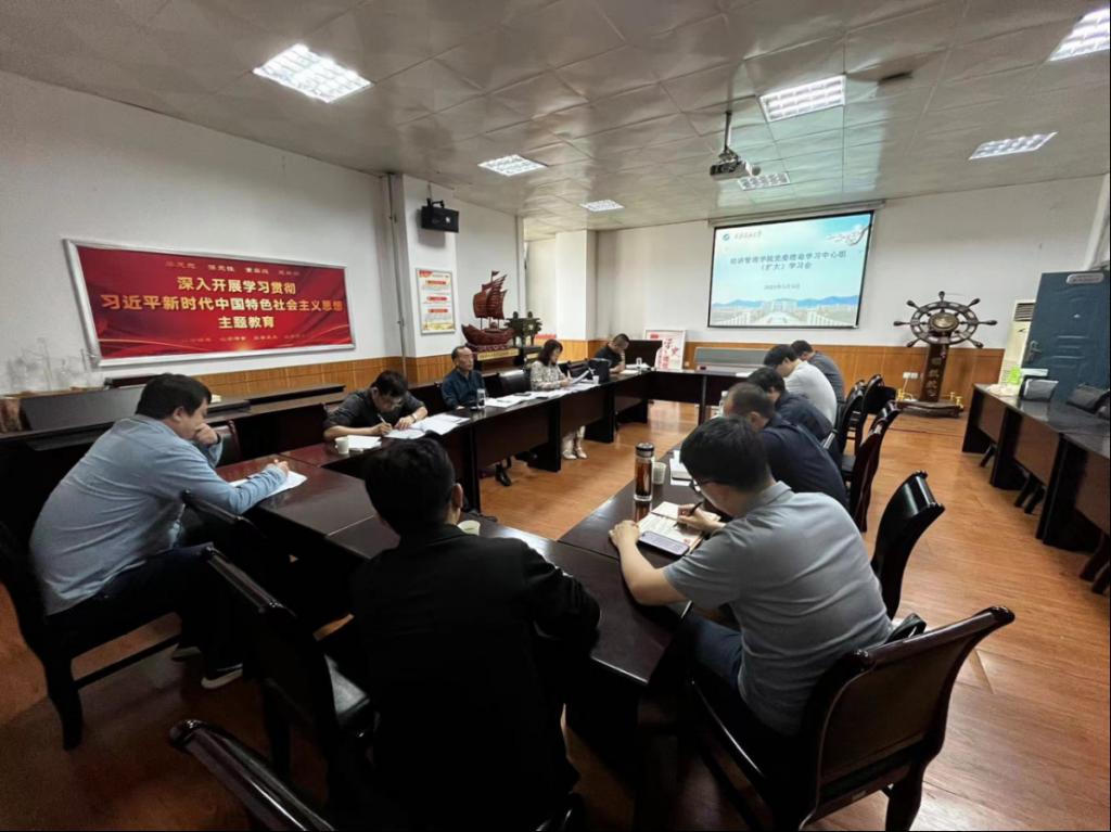 5月9日,经济管理学院党委召开理论学习中心组(扩大)学习会,会议按照“第一议题”学习制度要求,专题学习中共中央办公厅印发的《关于在全党开展党纪学习教育的通知》,集中学习《中共bat365中文官方网站委员会深化干部作风能力提升年暨“作风、教风、学风”建设工作实施方案》及相关工作会议精神等内容。学院党委理论学习中心组成员、教工党支部书记和各系、办公室主任参加会议。学院党委书记谈建勤主持学习会。