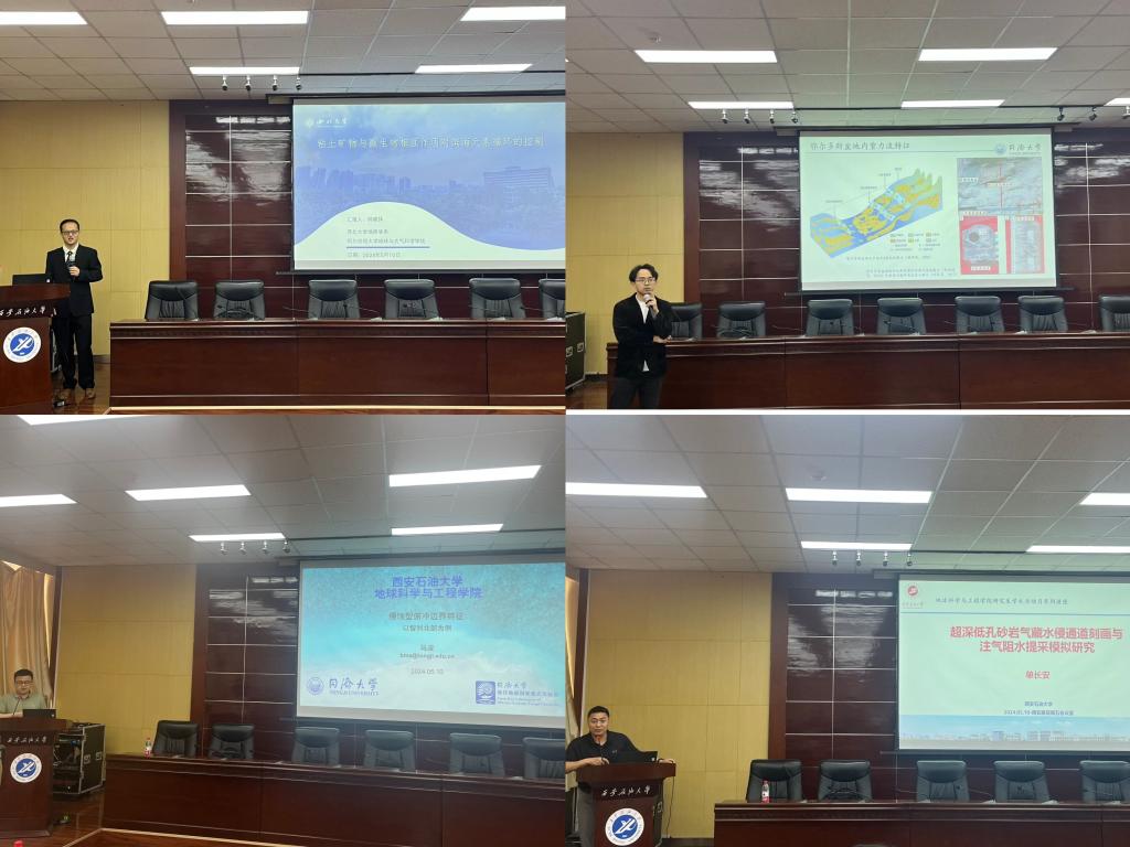 在大会报告环节,西北大学教授、国家优青郝威铎,同济大学研究员、上海市领军人才吴南,同济大学研究员、上海市白玉兰人才马波以及bat365中文官方网站副教授单长安为师生们作了精彩纷呈的学术报告。其中,郝威铎教授作了题为《粘土矿物与微生物相互作用对滨海微量元素循环的控制》的专题报告;吴南研究员作了题为《深海重力流的识别标志与油气地质意义》的专题报告;马波研究员作了题为《侵蚀型俯冲边界特征-以智利北部为例》的专题报告;单长安副教授作了《超深低孔砂岩气藏水侵通道刻画与注气阻水提采模拟研究》的专题报告。报告结束后,4位校内外专家与现场师生进行了深入的交流和讨论,现场气氛热烈。最后,副院长党伟对4位专家带来的精彩报告表示感谢,并提到此次报告拓宽了专业研究视野,为多学科交叉研究注入新的理念,全体师生获益良多。
