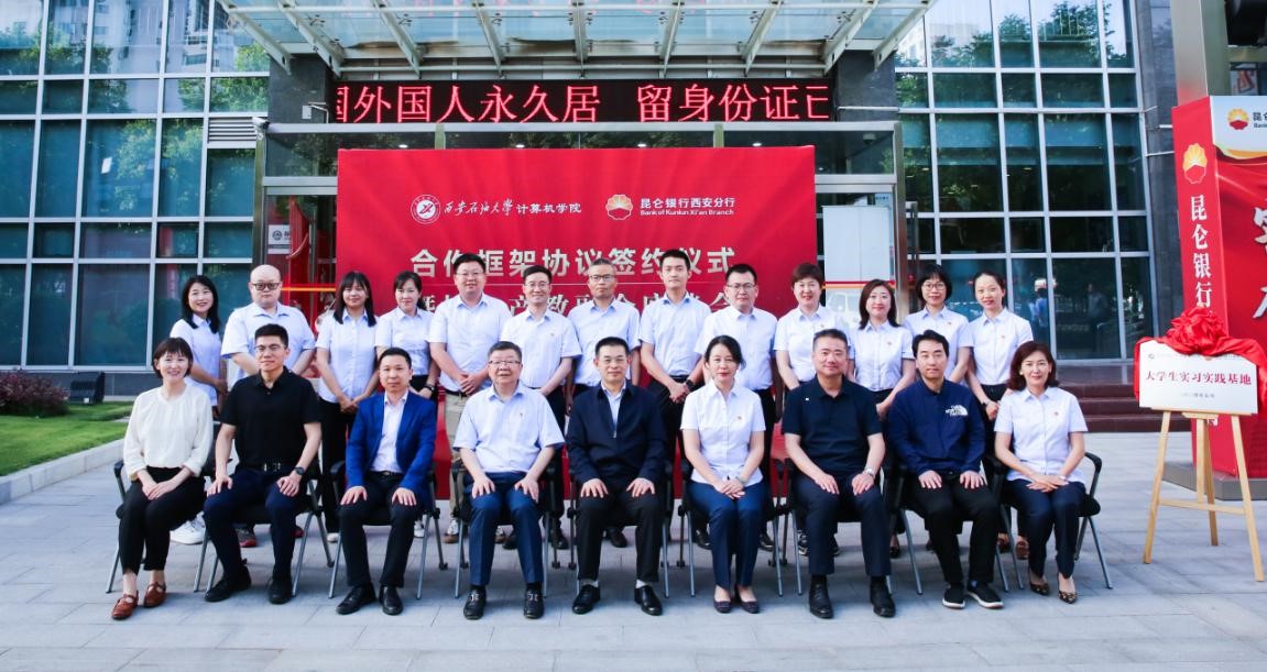 5月11日下午,计算机学院党委书记庞秉谦一行6人赴昆仑银行西安分行开展校企合作交流活动,签订合作框架协议,设立大学生实习实践基地,召开产教融合座谈会。昆仑银行西安分行党委书记、行长李伟,党委委员、副行长梁莹,专家王茜出席活动,昆仑银行西安分行部门负责人,在单位工作的部分校友代表参加活动。