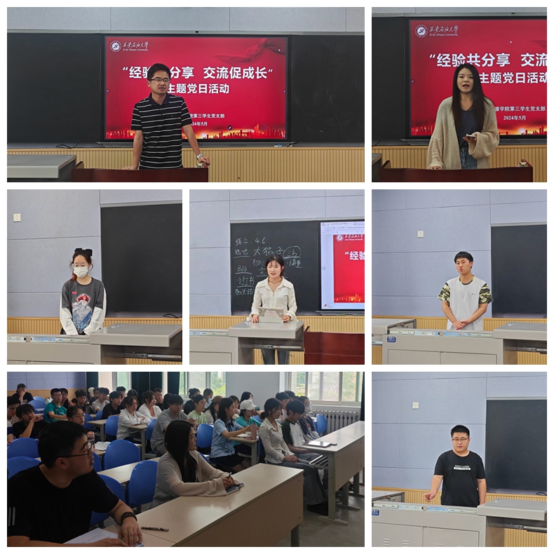 为实现校党委“一校一策”选题“推动新能源学院高质量发展”各项目标任务高质量完成,深化党建引领业务发展,进一步加强学院学风建设,正确引导2025届学生明确考研就业形势,做好个人发展规划,5月8日-11日,新能源学院各学生党支部组织开展“经验共分享,交流促成长”主题党日活动,活动由各学生党支部书记主持,2024届考研就业典型及全体2021级学生参加。