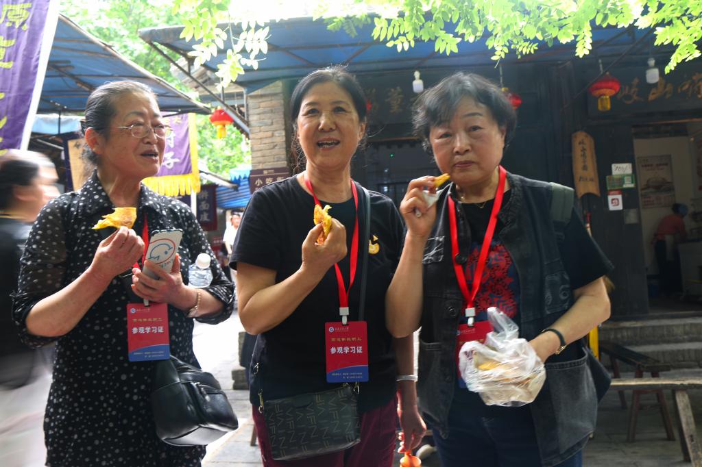 为了丰富离退休老同志的业余文化生活,5月11日,离退休职工作处组织200余名离退休干部赴社会主义新农村礼泉县袁家村参观学习。