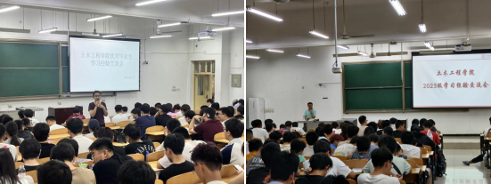 为激发学院大一、大二同学们的学习热情,帮助低年级学生更快地适应学习生活,更好地规划好未来的生涯发展方向,提高学习效率,明确学习目标,我院于5月21日晚,在博思楼B121教室和B114教室分别举办了土木工程学院学习经验交流分享会。本次活动邀请了三位学院大四保研同学,土木工程专业郑培林以及工程管理专业蒋卓凡、李菲凡同学出席并分享经验。